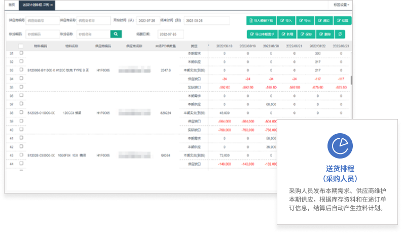 • 采购维护供应商的交货排程,或根据工单开工的物料需求排程